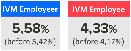 - Employer contribution to IVM: increases from 5.42% to 5.58% → a rise of 0.16 pp.
